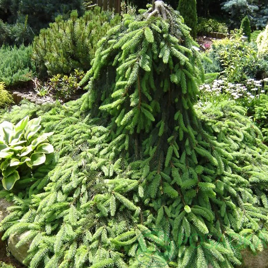 Компактная, карликовая форма плакучей ели с серебристо-голубой хвоей. Идеальна для рокариев, альпийских горок и контейнеров.